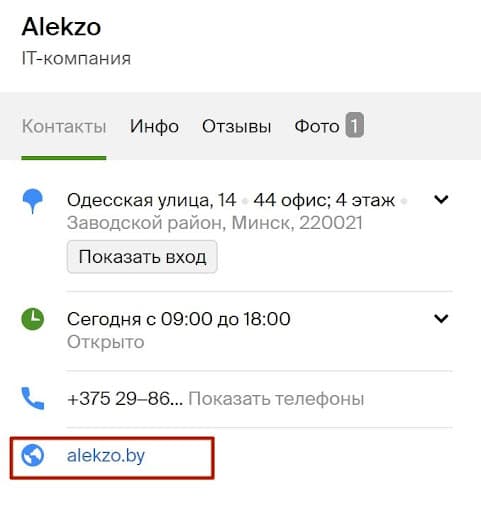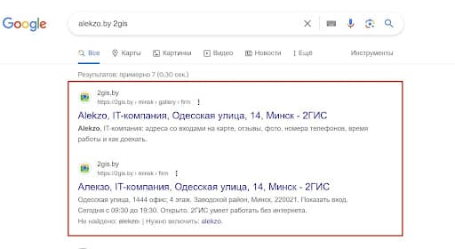 После, в результатах поисковой выдачи, смотрим первые 2 варианта на наличие нужной нам организации